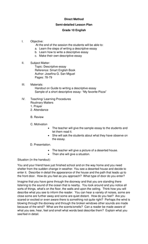 Sep 30, · Create a second day for your lesson plan in Algebra I. Once you have created your lesson plan, please answer the following questions regarding the principles of COME IN: 1. How did your lesson connect to the students’ prior knowledge, the real world, to action, and to participants? 2 Reflective Essay On Lesson Plan. This is an important step, because it can be used to find out what the class already knows about the concept and any misconceptions they may have. After developing an introduction it is time to get to the main aspect of lesson planning, the learning activities Develop a lesson plan for a preschool using Vygotsky’s ZPD. In an evaluative paragraph, describe how these lessons would be explained by Piaget using his view of development. Use of APA format for this assignment is limited to references only